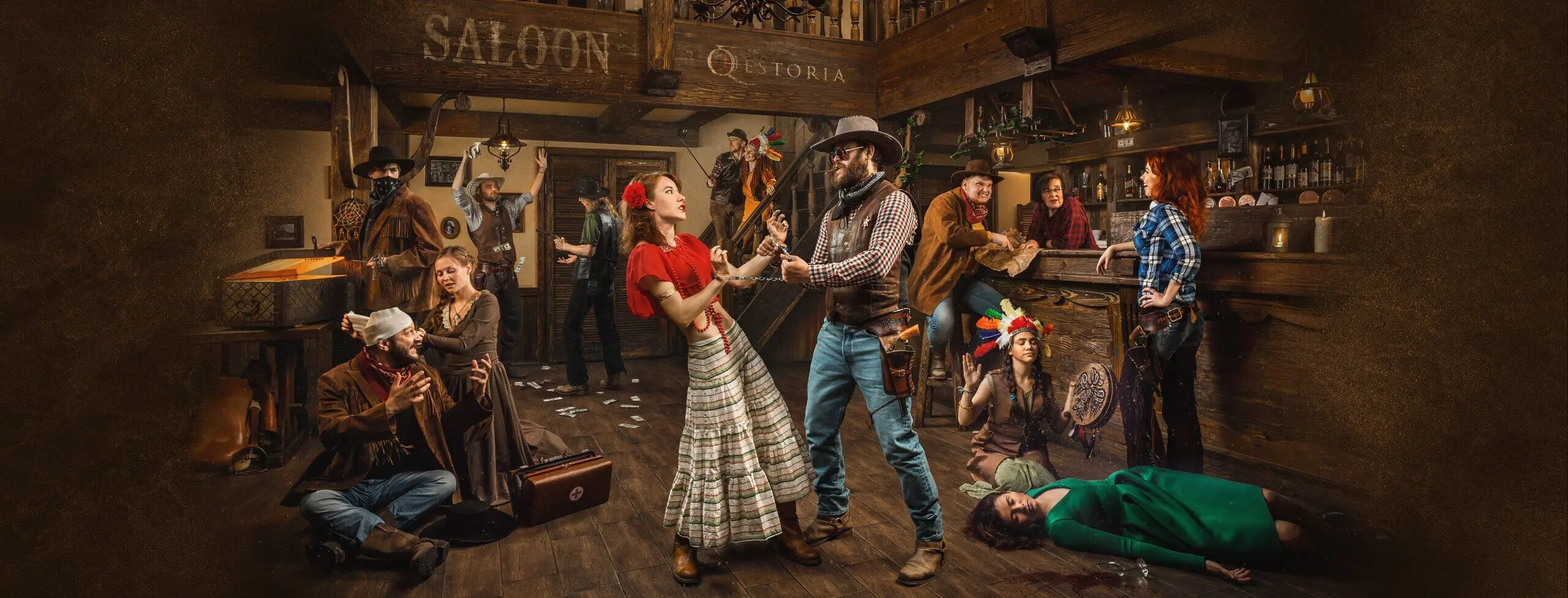Квесторія — гра для святкування, коли є бажання здивувати гостей та спробувати щось нове. Додому, до офісу, у школу чи кафе приїде ведучий із грою, та гості перевтіляться у героїв, наприклад, детективу.Ви – слідчий, хтось із друзів – убивця, ваша подруга – зухвала пройдисвітка, колега з роботи – мільйонер.Цілі в усіх різні: розкрити злочин, заплутати сліди, здобути секретні креслення.Як досягти цілей? Кожен обирає сам. Спілкуйтесь, домовляйтеся, плетіть інтриги. Вас кличуть поговорити наодинці – пастка? Подруга пригощає келихом вина – а якщо вино отруєне?