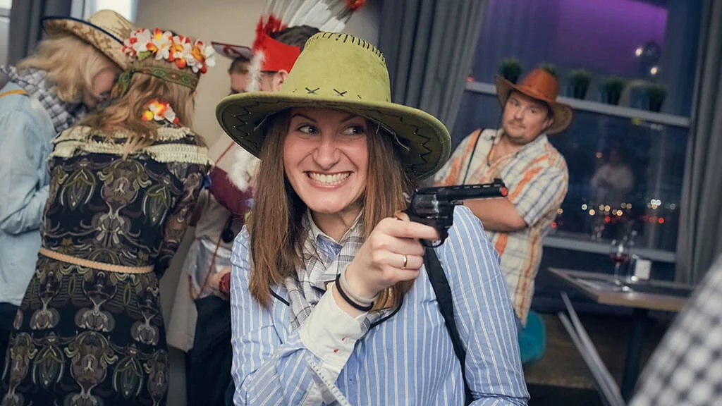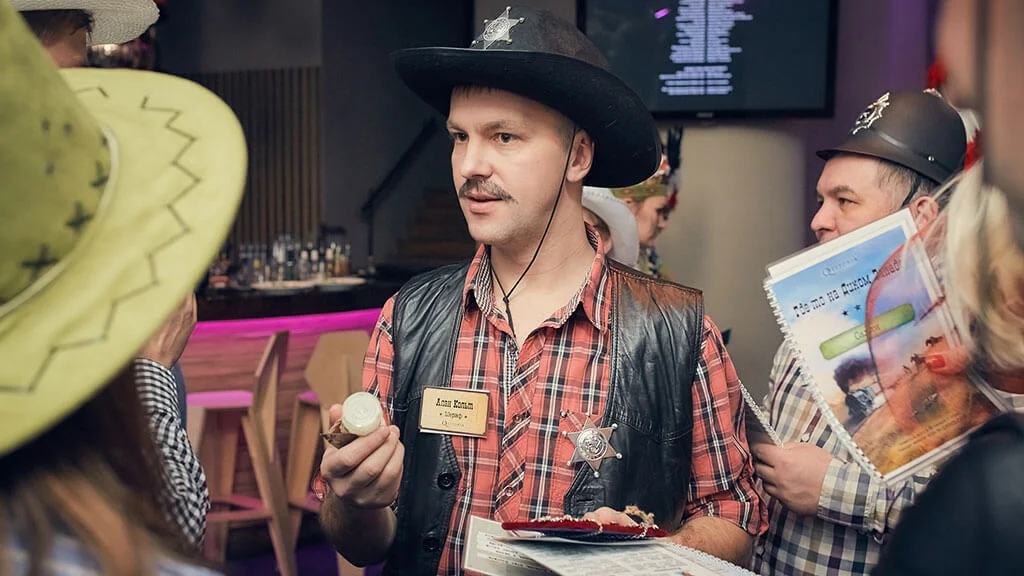 Квесторія — це гра не проти кімнати, а один з одним. Ви граєте у команді, але у кожного — своя мета. Ведучий проведе гру де завгодно і з будь-якого приводу — на день народження, корпоратив або просто так.